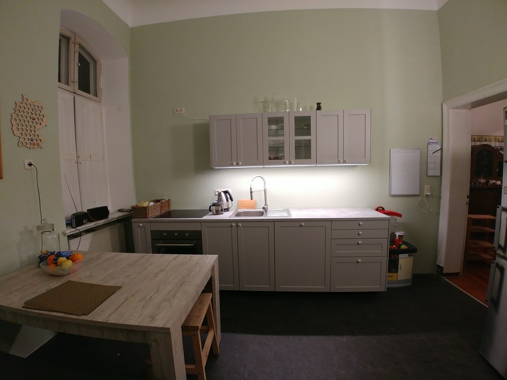 1. Glückwunsch zur besinnlichen Adventszeit, Lydia. Kommt runter. Die Küche ist toll. Anhand Eurer Türzargen und Fensterrahmen sieht man endlich mal, was sich die Designer gedacht haben beim Entwurf der Küche. In einer Neubauwohnung wirkte so eine Landhausküche(?) doch vergleichsweise fehl am Platz, wenn nicht schwachsinnig. Eure heimliche Tanzfläche? So viel Platz.