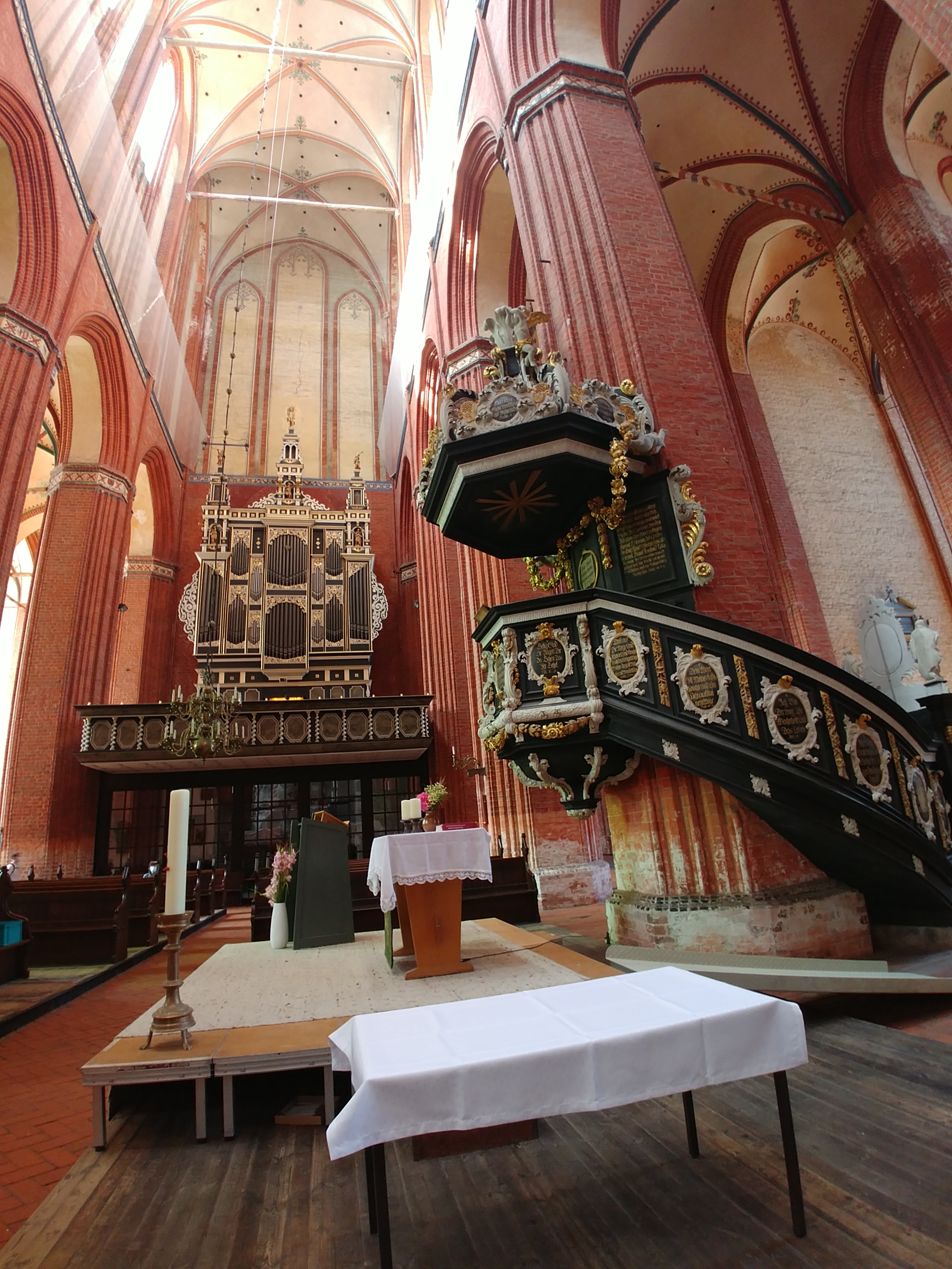 Die Mende-Orgel und Kanzel in der Nikolaikirche.