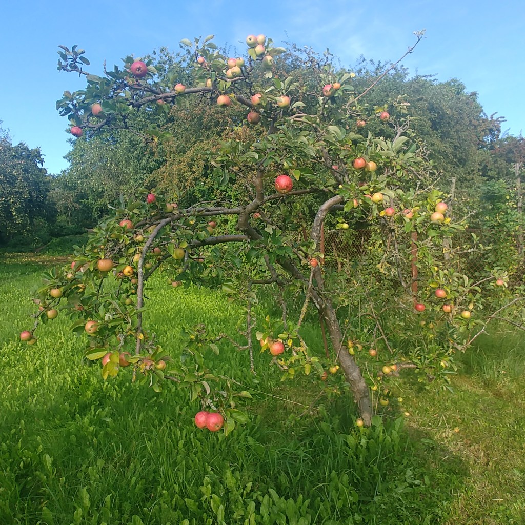 Wir haben nun Anfang September einen Termin bei der hiesigen Mosterei. Eine von wenigen, die Saft aus den eigenen Äpfeln herstellt. Schon mein Opa brachte die Äpfel dorthin. In seinem Keller standen Massen an Mostflaschen. Seine alten Obstkisten haben wir immer noch. Ich freue mich wie ein kleines Kind drauf: Apfelsaft von Äpfeln aus dem eigenen Garten!