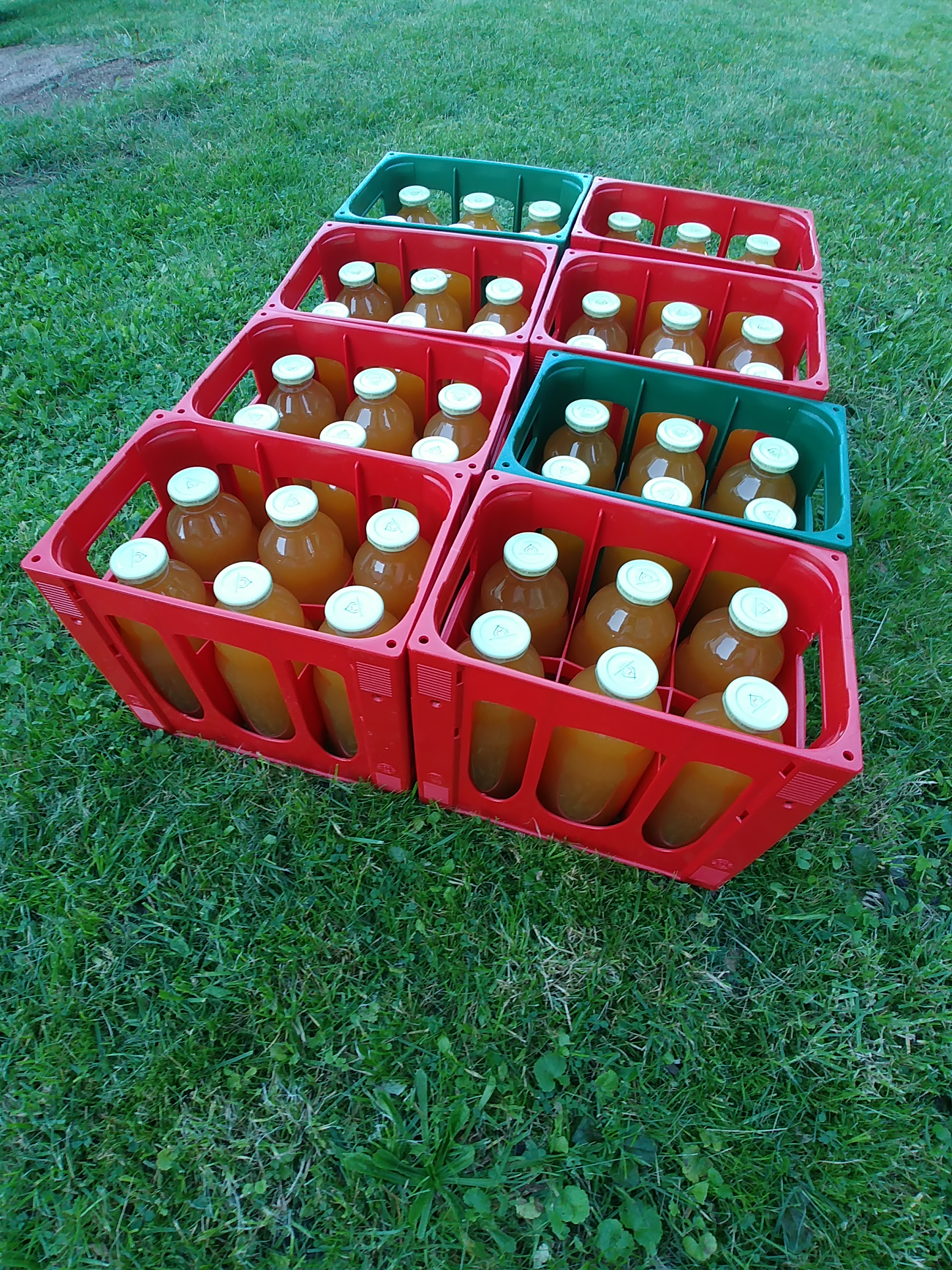 Noch was anderes: Wir ernten und verarbeiten bzw. lassen verarbeiten. Wir haben nun unseren eigenen Apfelsaft von Äpfeln aus unserem Garten! So lecker! Das restliche Obst wird zu Marmelade und eingeweckt. Der Winter kann kommen!