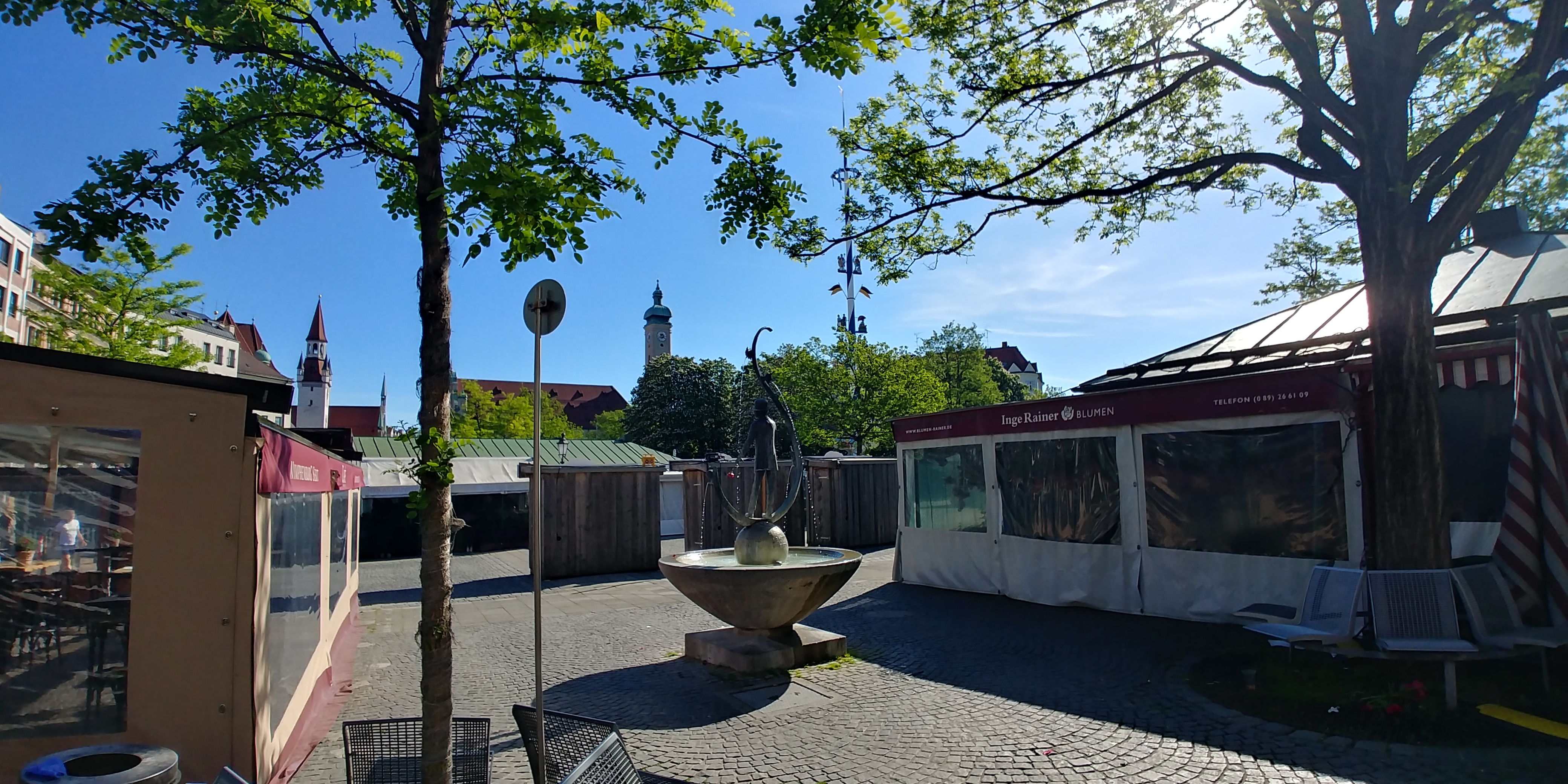 Sehr wahrscheinlich Coronabedingt hatte der Viktualienmarkt keinen Maibaum im letzten Jahr. Mei, schaute er nackert aus. Umso mehr freute ich mich über den liebreizenden Anblick des neuen Maibaums in weiß-blauen Gewand unter weiß-blauem Himmel. Der Maibaum auf dem Viktualienmarkt ist schon was Besonderes: Statt die traditionellen Gewerbe einer Gemeinde, zeigt er Szenen aus dem Münchner Leben. Und nicht nur das. Er weist auch auf das ältestes Nahrungsmittelgesetz hin, den Ursprung des bayerischen und deutschen Reinheitsgebots: Das Münchner Reinhheitsgebot von 1487.